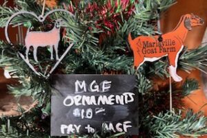 A beautiful iron rusted goat with a clean but rustic patina – a simple, yet classy, addition to any ornament collection! Â Or, a customized “Mariaville Goat Farm” wooden goat ornament – to recall fond memories of time spent on the farm!